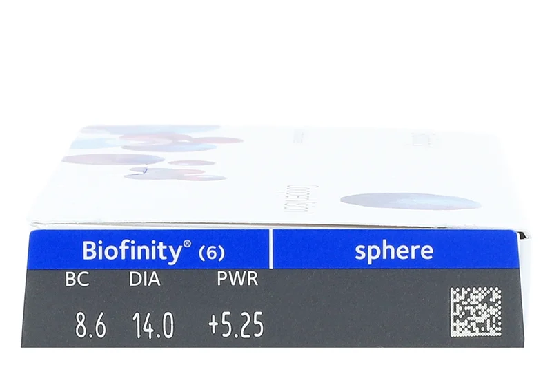 CooperVision Biofinity 6-pack contact lenses are made using Coopervision’s patented Aquaform™ technology. The material in Biofinity is very breathable to help keep your eyes comfortable all day long.